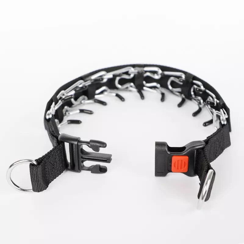 Door de rubberen bescherming op de metalen delen zal je hond alleen druk voelen bij het corrigeren. De bescherming kan er ook afgehaald worden.